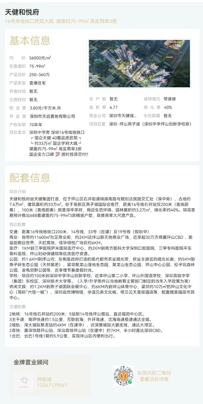 深圳中學旁 深圳16號線地鐵口國企天健 40載品質匠筑 ╕約33萬㎡ 國企學府大城 ╛建面約75-99㎡ 高實用率3房國企實力口碑 按時按質交付?