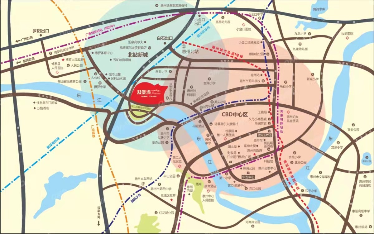 項(xiàng)目二期旁邊一條長風(fēng)路6分鐘可到達(dá)白石互通新開高速入口,預(yù)計(jì)于今年年底通車,通車后,30分鐘廣州,深圳,東莞半小時(shí)生活圈,8分鐘惠州北站,于2021年9月通車,贛深高鐵,廣汕高鐵,惠州北站將是珠三角第二大交通樞紐站,門口有50路公交車直達(dá)華茂,第一人民醫(yī)院,市政府等購物中心,行政中心與醫(yī)療機(jī)構(gòu)。第三東江大橋年底通車,通車后10分鐘可到達(dá)西湖風(fēng)景區(qū)。